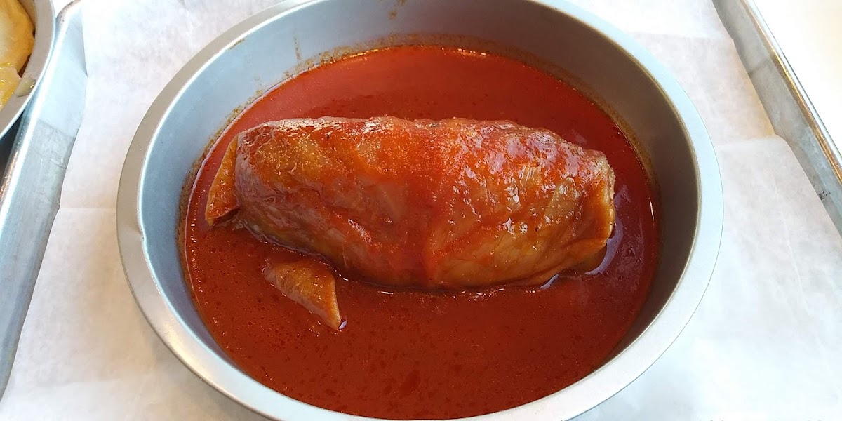 Order 2 cabbage rolls to go.Tasted very good, she offered to heat them for me, but I declined. Cabbage rolls were filled with meat and rice tomato sauce about seven or eight inches long