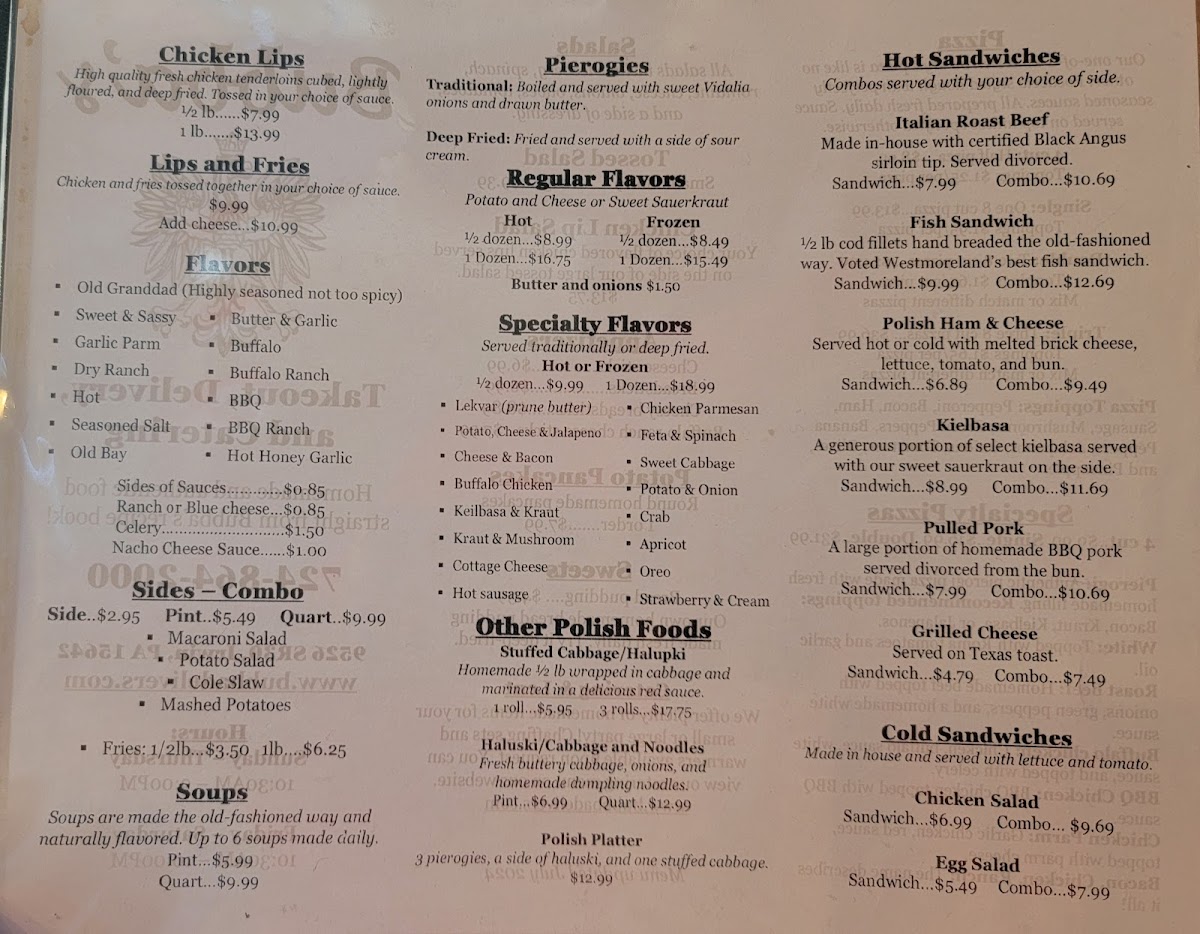 Menu highlights like the Polish Platter, Chicken and Dumplings, and Deep Fried Pierogies bring a warm, familiar touch perfect for lunch or dinner, while lighter options such as tossed salads and grilled cheese combos complement the heartier choices. Side dishes like potato pancakes and mashed potatoes add to the sense of simple, welcoming fare.