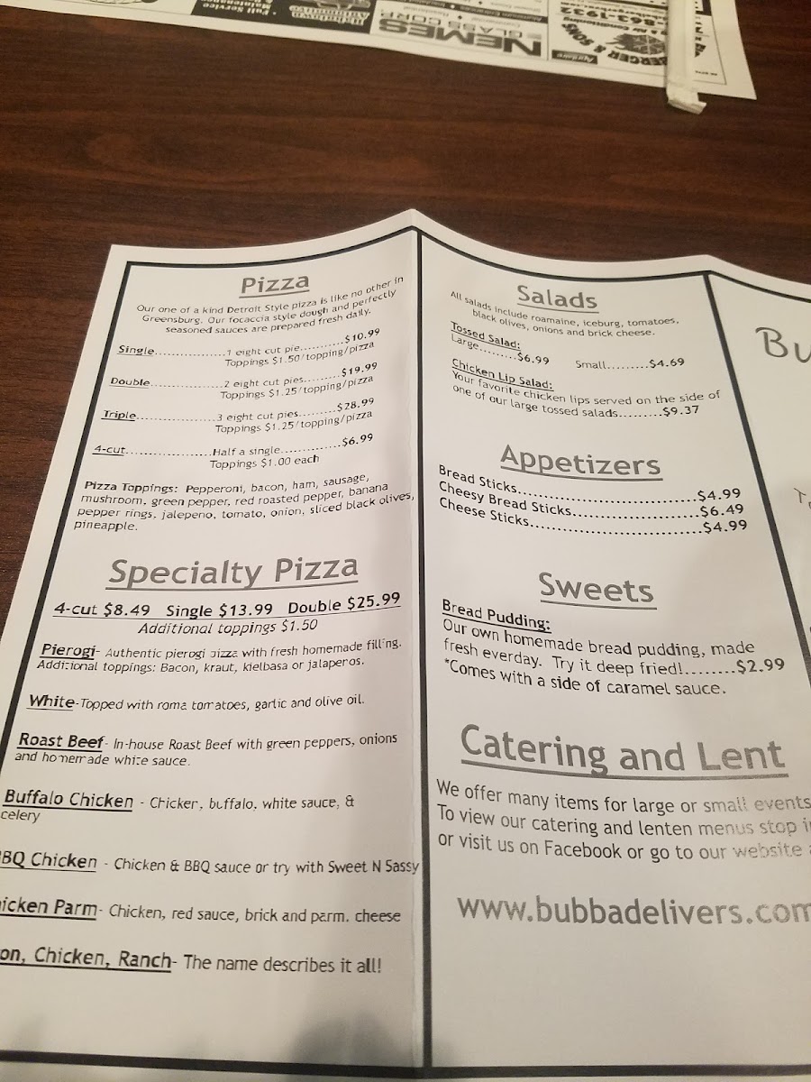 Bubba's Menu